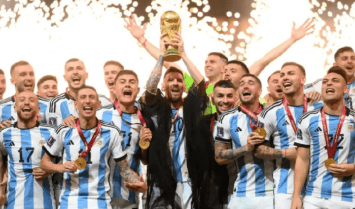 如今的阿根廷队是世界杯冠军得主,在2022年卡塔尔世界杯赛场上。阿根廷队虽然小组第一场1-2爆冷不敌沙特,但之后一路过关斩将,夺得世界杯冠军,决赛常规时间内2-2战平法国,加时赛梅西和姆巴佩进球、点球大战马丁内斯扑点,成就世界杯三冠王的伟业,也让阿根廷队吸粉无数。