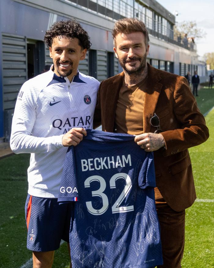 47岁小贝造访巴黎!获赠32号球衣,与合影球星:梅西不抢戏站最边