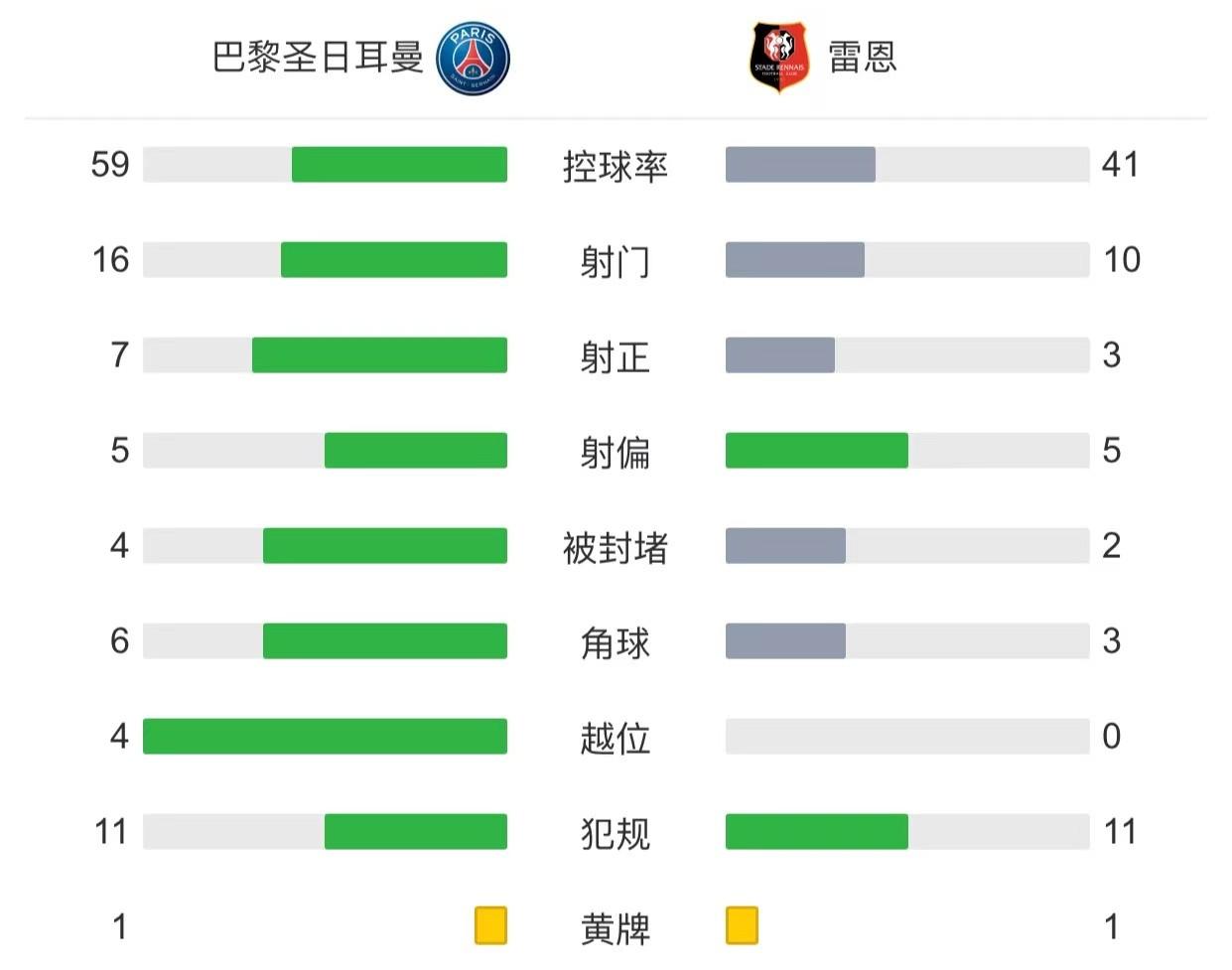 巴黎0-2雷恩 姆巴佩两失单刀梅西多次妙传被浪费