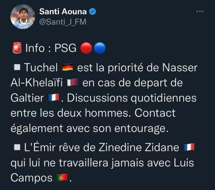 该记者表示,如果加尔蒂埃离任,图赫尔会是纳赛尔的首选,他们二人目前还经常联系。