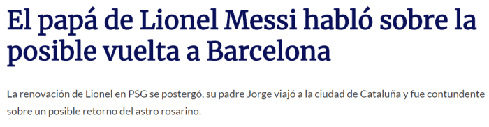 豪尔赫-梅西说:“我不认为我的儿子里奥会重返巴萨,回巴萨的条件并不满足,我们也没有和拉波尔塔有过会谈,巴萨方面也没有给出报价。”