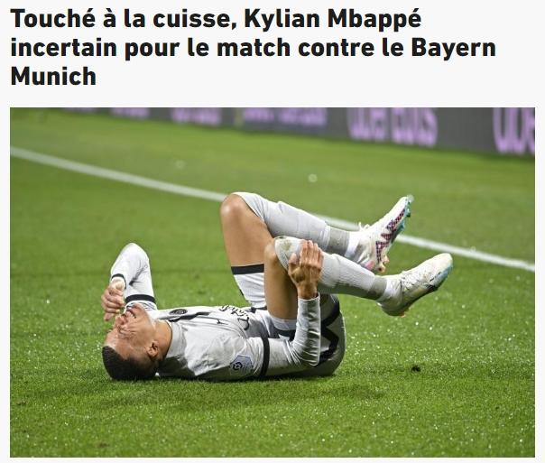 直播车02月03日讯 根据队报消息,姆巴佩做了检查,结果显示大腿肌肉受伤。