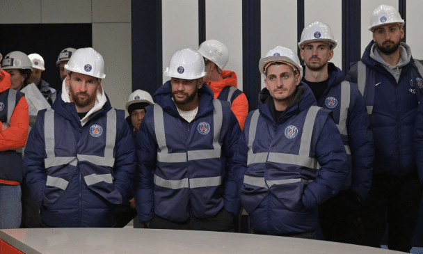 梅西身旁的是内马尔和维拉蒂,其中维拉蒂被认为非常像光头强,尤其是带上安全帽之后。内马尔则像技术员一样,看起来还很文雅。姆巴佩不愧是有着“姆总”的称号,确实很像老总。