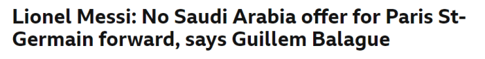 此前有消息称,沙特球队利雅得新月将向梅西提出报价。不过英国媒体BBC表示,梅西没有收到来自沙特的报价,他也不会接受来自沙特的报价。