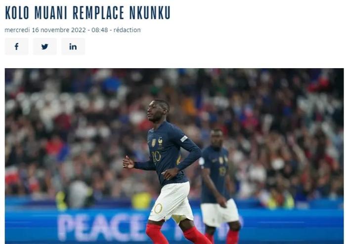 来源:直播车11-16 20:13直播车11月16日消息,法国队招入23岁的法兰克福前锋科洛-穆阿尼,代替受伤的恩昆库。
