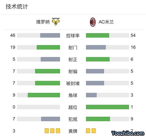 全场结束,最终AC米兰客场2-1击败维罗纳。