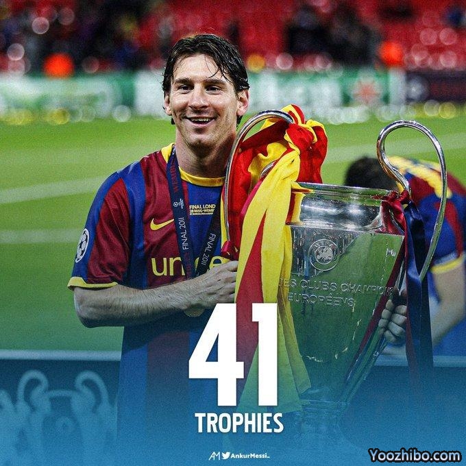 梅西职业生涯已获41冠,还差2冠并列历史第一