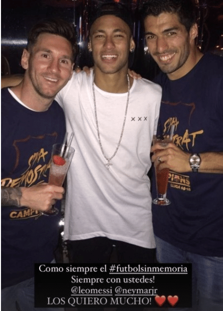 直播车03月14日讯 消息,乌拉圭球星路易斯-苏亚雷斯发文支持前巴塞罗那队友内马尔和梅西。