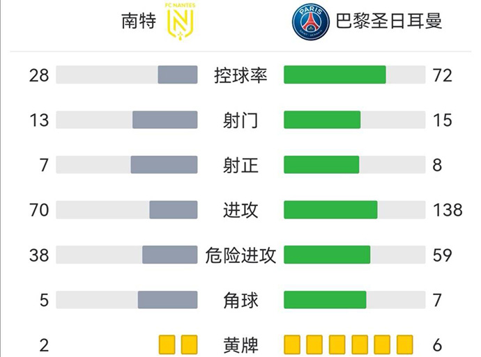 巴黎1-3南特 内马尔破门+离谱失点梅西姆巴佩屡失良机