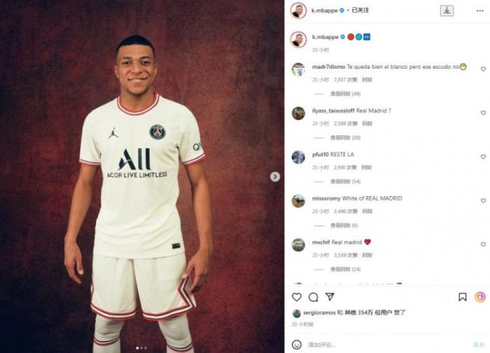 从球迷的反应来看,似乎大家的关注点在球衣的颜色上。有球迷认为,尽管球衣前面印有巴黎圣日耳曼的队徽,但是这颜色分明就是皇马的球衣配色。“皇马?”、“这是皇马的白”、“皇马”......拉莫斯等人为这条动态点赞。