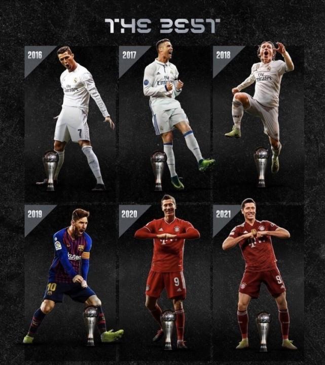 尽管梅西曾6次夺得世界足球先生的称号,但自从2016年,国际足联宣布世界足球先生与金球奖取消合并,并且更名为FIFA年度最佳球员(FIFA World Player of the Year)之后,梅西只有在2019年成功当选过1次,甚至落后于C罗和莱万的2次。