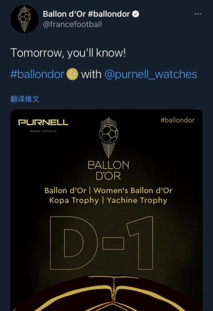 金球奖的主办方《法国足球》杂志也在今日预热了金球奖的颁奖典礼,他们在官方社交媒体上写道:明天,你们就会知道!