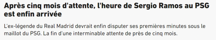 《队报》表示,经历了5个月的等待后,拉莫斯的巴黎首秀终于要来了。