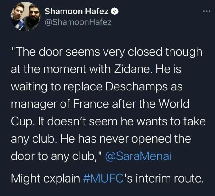 目前齐达内大门紧闭,他正在等待世界杯后接替德尚成为法国队主帅,他似乎不想执教任何俱乐部,他从未给任何俱乐部敞开大门。