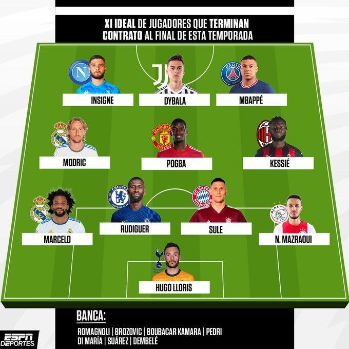 目前欧洲足坛有多名球星的合同将在明夏到期,ESPN列出了一套由这些球员组成的最佳阵容,具体如下: