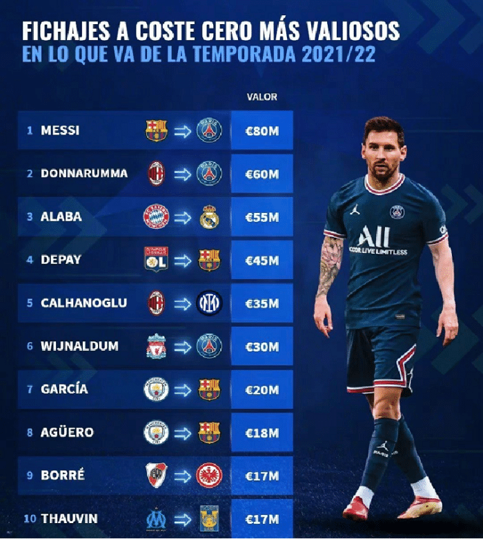 今夏自由转会球员身价排行:梅西榜首,谁是第二超值的那个?