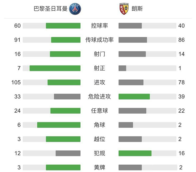 全场比赛结束,巴黎2-1力克朗斯,收获联赛四连胜。
