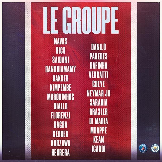 直播车讯 北京时间4月29日凌晨3:00,巴黎将在主场迎来欧冠半决赛首回合与曼城的较量。赛前, 巴黎对阵曼城大名单:内马尔、姆巴佩领衔,迪马利亚、伊卡尔迪、马尔基尼奥斯等人在列。