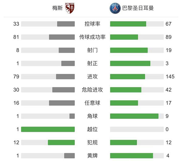 第4分钟,埃雷拉送出过顶长传,姆巴佩利用速度甩开防守,胸部停球后凌空抽射破门,巴黎圣日耳曼1-0领先梅斯。