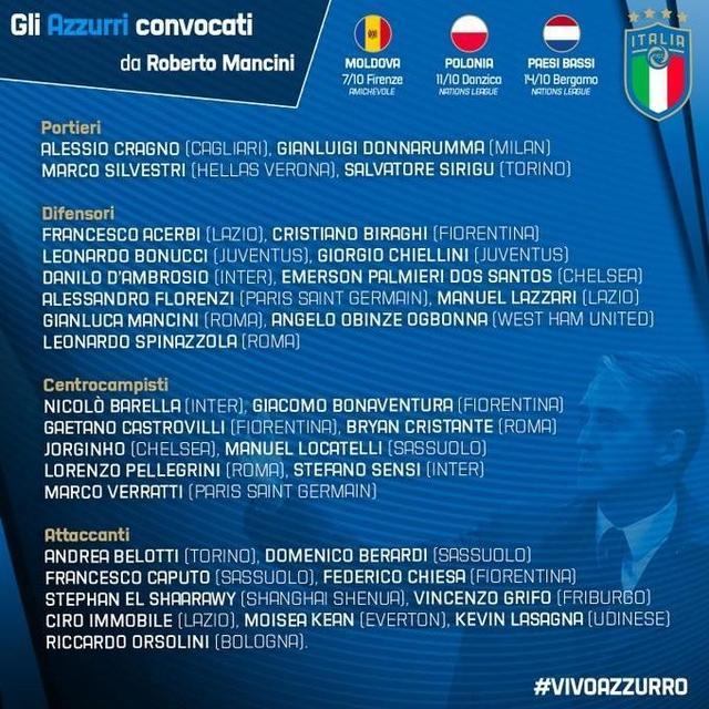 在本期国家队比赛日,意大利国家队球员中还有博努奇感染了新冠,加上四名工作人员和两名教练组成员,总计感染人数已达8人。