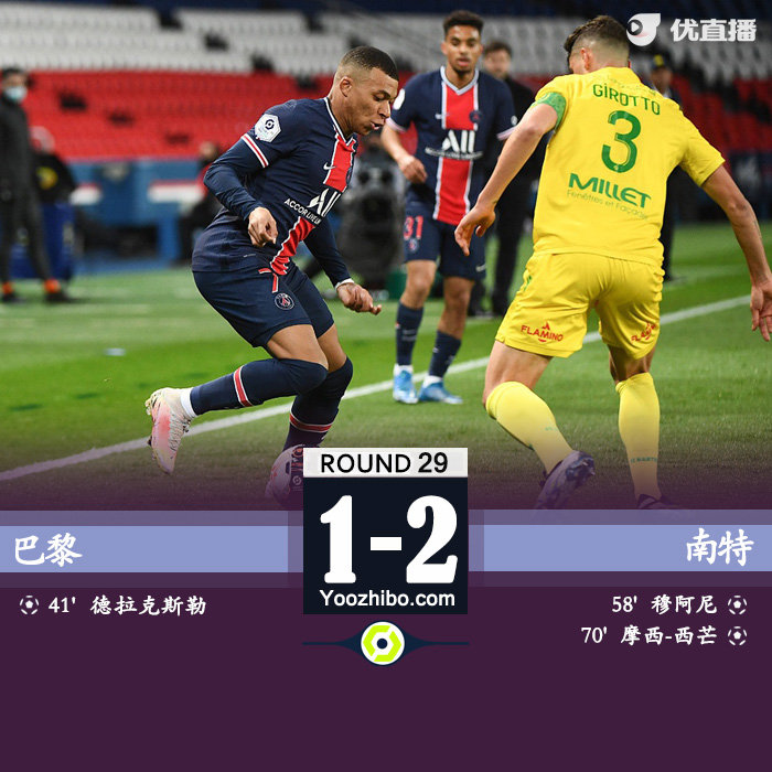 巴黎1-2南特爆冷 小德破门姆巴佩失误送礼