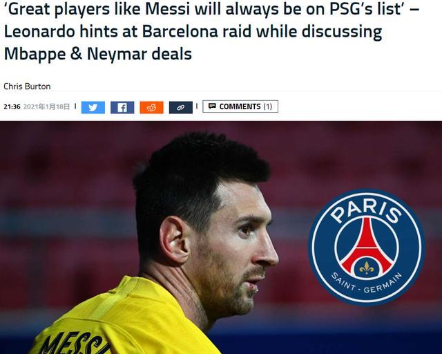 直播车1月19日讯 巴黎圣日耳曼体育总监莱昂纳多最近接受了《法国足球》采访,他表示梅西这种级别的球员永远都会在巴黎的引援名单之中。