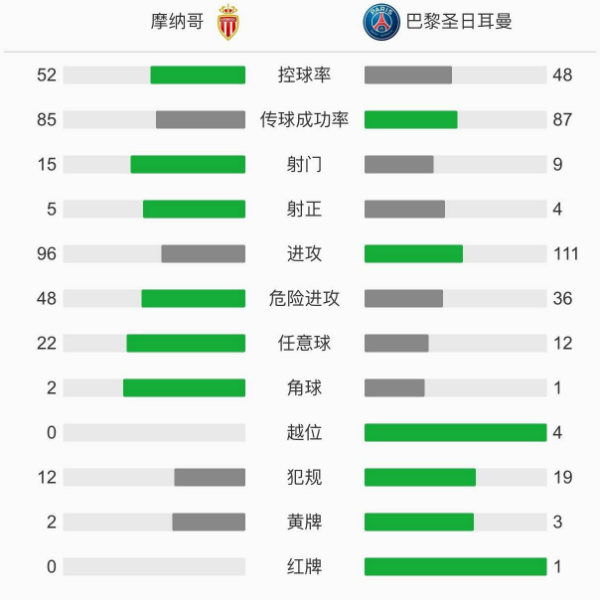 第25分钟,巴黎率先取得进球!巴黎后场得球发动反击,迪马利亚中圈内送出直塞,姆巴佩顺势启动高速杀入禁区面对出击的维托-玛诺内轻松打门得手,巴黎1-0领先摩纳哥。