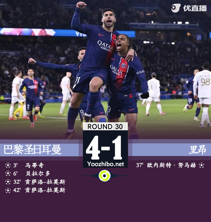 巴黎4-1里昂 贝纳维德斯破门,里奥哈凌空斩