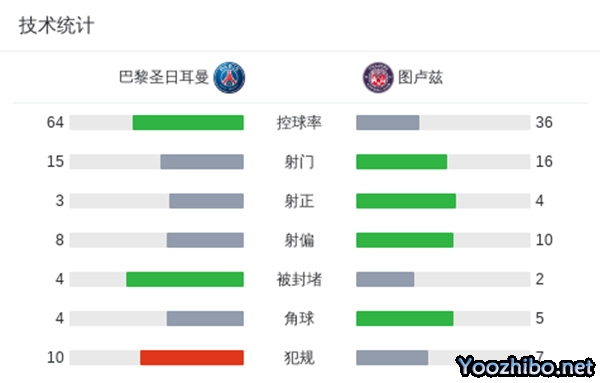 最终全场比赛结束,巴黎1-3图卢兹。