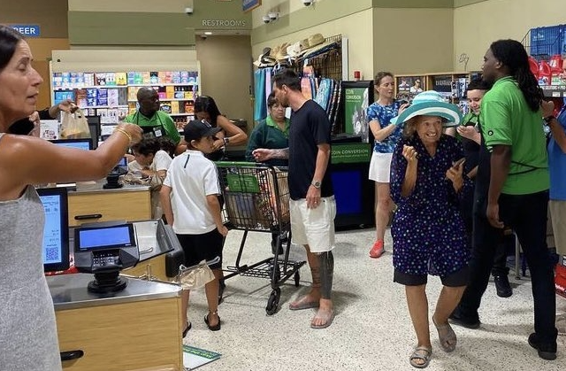 虽然足球不是美国的第一运动,但梅西的影响力、人气是很大的,所以梅西出现在超市之后点燃了所有人的眼球。有一名老太太在看到梅西之后露出了不可思议的表情,可能她也没有想到,能够这么近距离接触球王。
