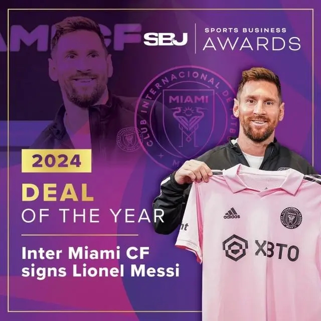 在Sports Business Journal的年度颁奖礼上,迈阿密国际签下梅西被评为年度交易,颁奖语写道:“迈阿密国际老板多年来一直努力将这位阿根廷巨星带到美国,这给俱乐部和美国职业足球大联盟带来了巨大的转变。”