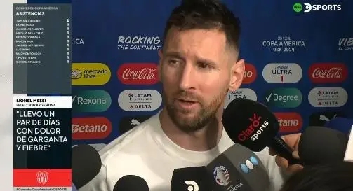 直播车讯 美洲杯第二轮,阿根廷1-0智利提前出线。赛后梅西接受采访表示自己近日生病了。
