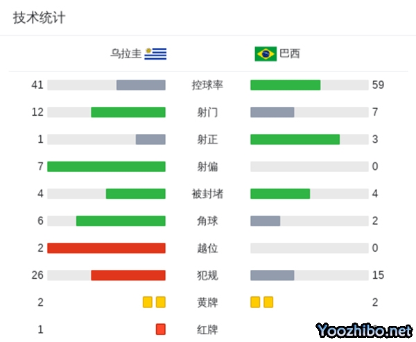 来源:直播车07-07 11:13 直播车讯:北京时间7月7日美洲杯 1/4决赛,乌拉圭对阵巴西。最终比分乌拉圭 4-2 巴西。