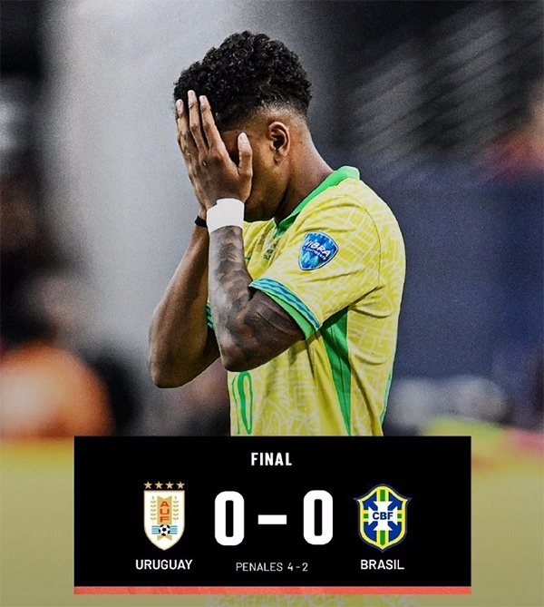 来源:直播车07-07 16:44直播车讯 在北京时间7月7日结束的美洲杯最后1场1/4决赛中,“五星”巴西在常规时间90分钟多打1人情况下,0-0被乌拉圭逼平,点球大战中,巴西2-4不敌乌拉圭,遗憾无缘4强。这也是近3届巴西美洲杯的最差战绩,上2届球队分别是冠军和亚军。