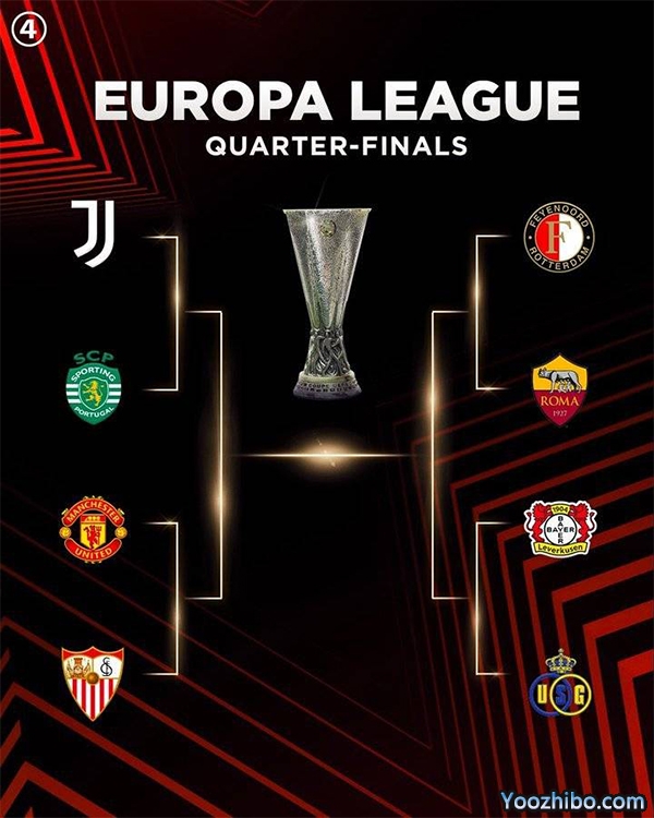 直播车讯 北京时间3月17日20点,2022-23赛季欧联杯1/4决赛及半决赛抽签结果出炉:曼联VS塞维利亚、尤文图斯VS葡萄牙体育、勒沃库森VS圣吉罗斯、费耶诺德VS罗马。