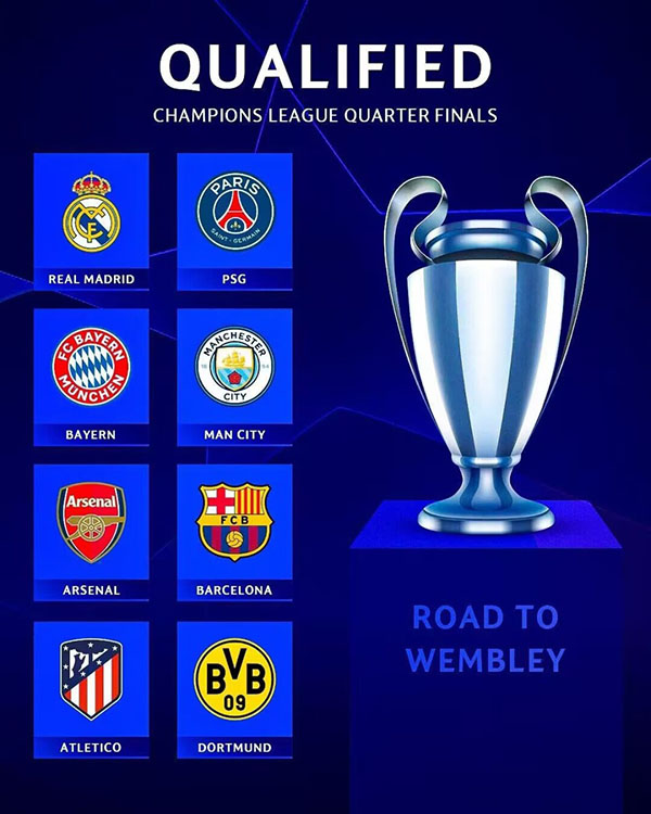 从历史底蕴来看,这8队曾27次问鼎欧冠冠军。其中皇马就曾14次夺冠,拜仁为6次,巴萨5次,曼城和多特蒙德各1次,阿森纳、大巴黎和马竞则是0冠,但这3队都曾杀进过欧冠决赛。