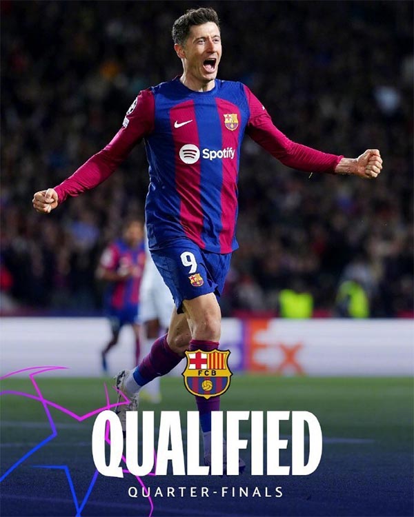 而在巴萨主场与那不勒斯的比赛中,巴萨开场由费尔明和坎塞洛连进2球,尽管拉赫马尼一度帮助那不勒斯缩近比分,但第85分钟莱万打空门得手锁定胜局。最终,巴萨总比分4-2淘汰那不勒斯晋级。