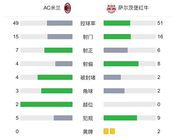 全场比赛结束,最终AC米兰主场4-0大胜萨尔茨堡红牛。