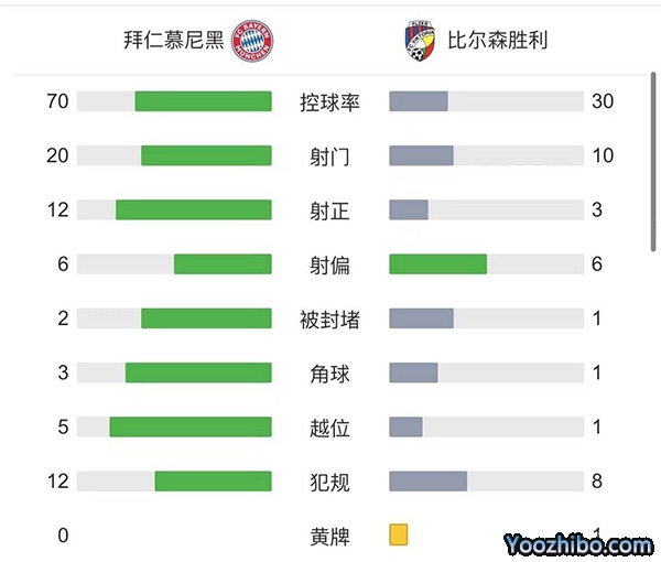 全场比赛结束,最终拜仁5-0比尔森胜利。