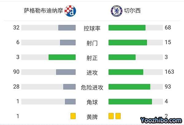 全场比赛结束,切尔西0-1萨格勒布迪纳摩。