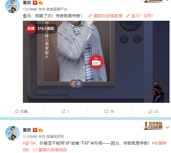 就连一向比较挑剔的知名媒体人董路都表示:皇马,你甚至不能用“好”或者“不好”来形容——因为,传奇就是传奇!皇马,我服了你!传奇就是传奇!