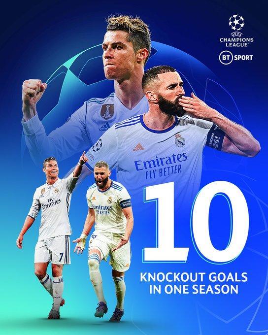 本赛季至今,本泽马已在欧冠淘汰赛阶段打进了10球,这已追平由C罗创造的单赛季欧冠淘汰赛进球纪录,若能在决赛中再次破门,本泽马就将创造属于自己的纪录。