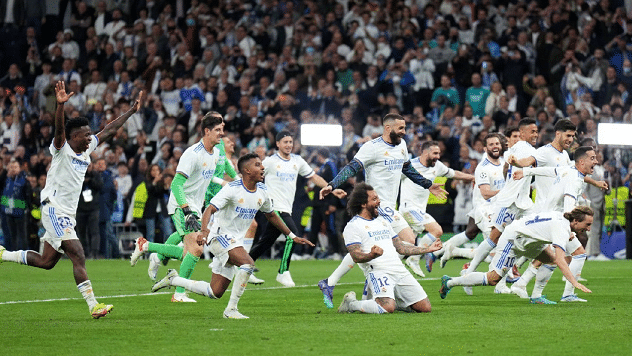 来源:直播车05-05 18:25直播车05月05日讯 ,皇马在欧冠半决赛次回合上演神奇逆转,面对强大的曼城,罗德里戈最后时刻连进2球,才将总分扳成5-5平拖入加时赛。加时赛本泽马点球制胜,皇马以总分6-5挺进欧冠决赛,与利物浦争夺大耳朵杯冠军。皇马不愧是欧冠之王,绝境时刻表现沉稳,球员拥有大心脏。这样皇马在赢得西班牙超级杯和西甲冠军之后,正式向着赛季三冠王荣誉发起冲击。
