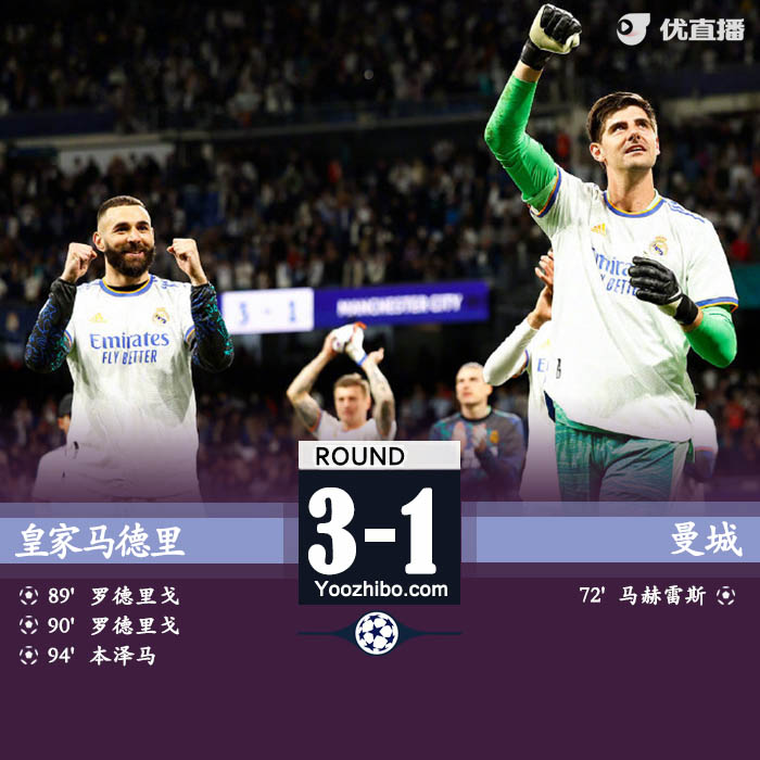 皇马3-1总6-5曼城 罗德里戈双响奔马加时点射 进决赛