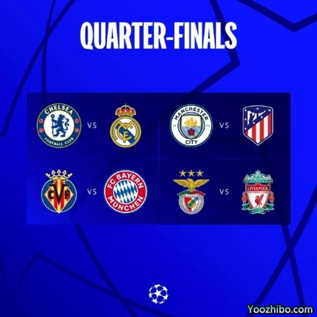 附:欧冠1/4决赛对阵形势(前者先主后客)