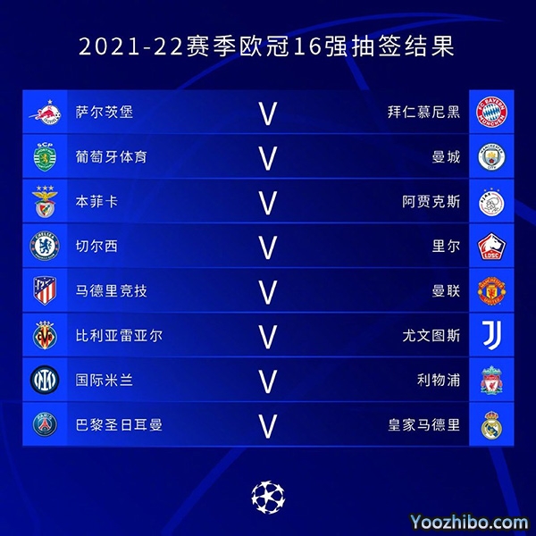 2021-2022赛季欧洲冠军联赛16强对阵表