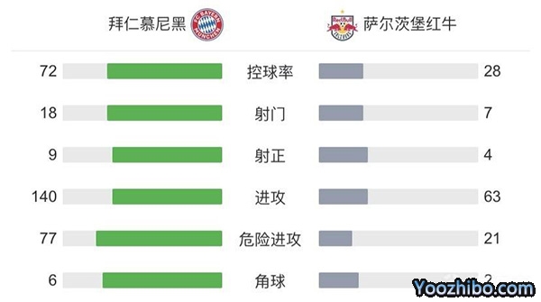 全场比赛结束,拜仁慕尼黑主场7-1大胜萨尔茨堡红牛。