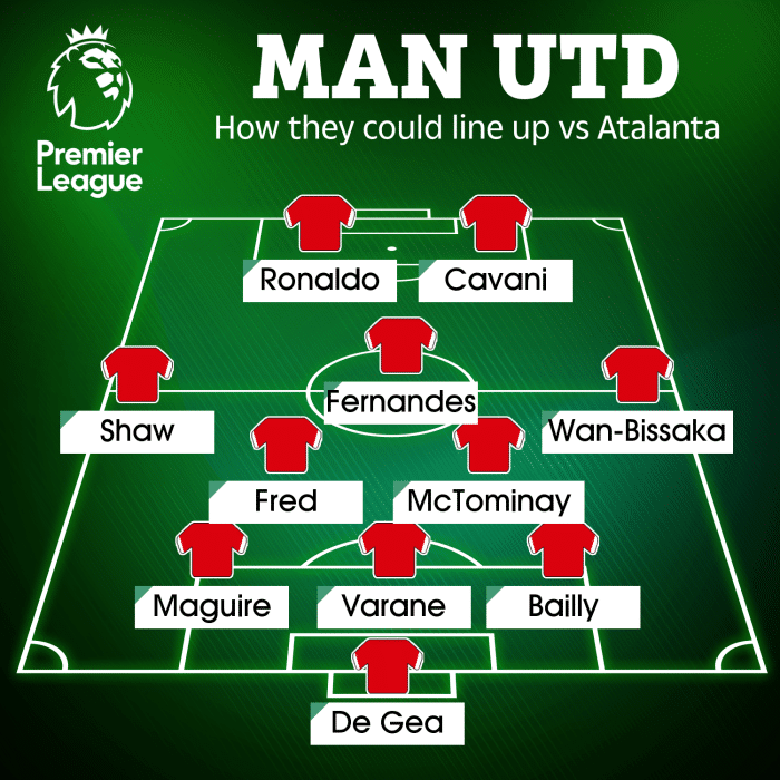 曼联出征亚特兰大名单:德赫亚,迪恩·亨德森,汤姆·希顿;万比萨卡,迪奥古·达洛,马奎尔,瓦拉内,埃里克·巴伊,卢克·肖,特莱斯;弗雷德,马蒂奇,麦克托米内,博格巴,范德贝克,布鲁诺·费尔南德斯,林加德,马塔;阿马德·迪亚洛,卡瓦尼,梅森·格林伍德,马夏尔,拉什福德,C罗,桑乔。