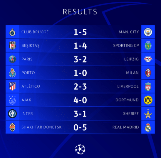 今天的8场欧冠比赛一共为球迷奉献了35个精彩进球,统计数据表明,这是欧冠历史上单个夜晚8场比赛第五多的进去纪录。
