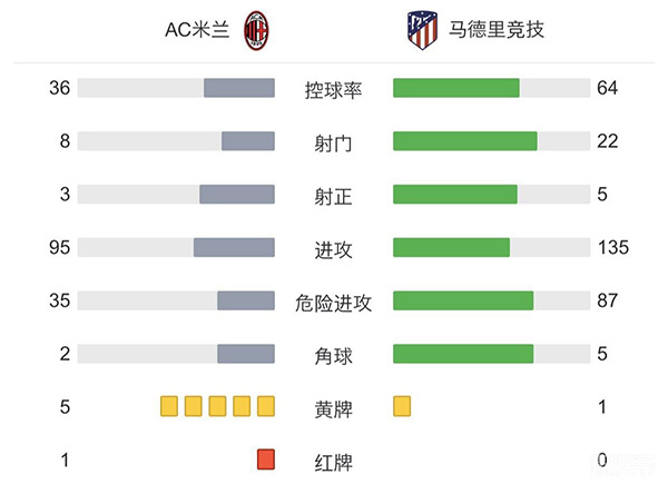 全场比赛结束,十人AC米兰1-2遭马竞逆转,红黑军团小组赛开局两连败。